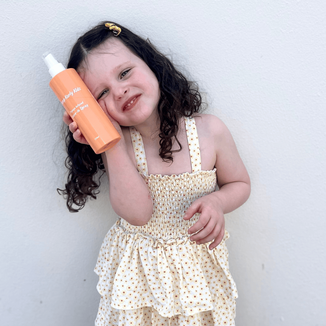 Kurly Kidz Leave-In Spray is specially formulated for young children with curly or wavy hair. Its gentle formula hydrates, detangles, and enhances curl definition, leaving hair soft, manageable, and frizz-free. Perfect for daily use or touch-ups between washes.